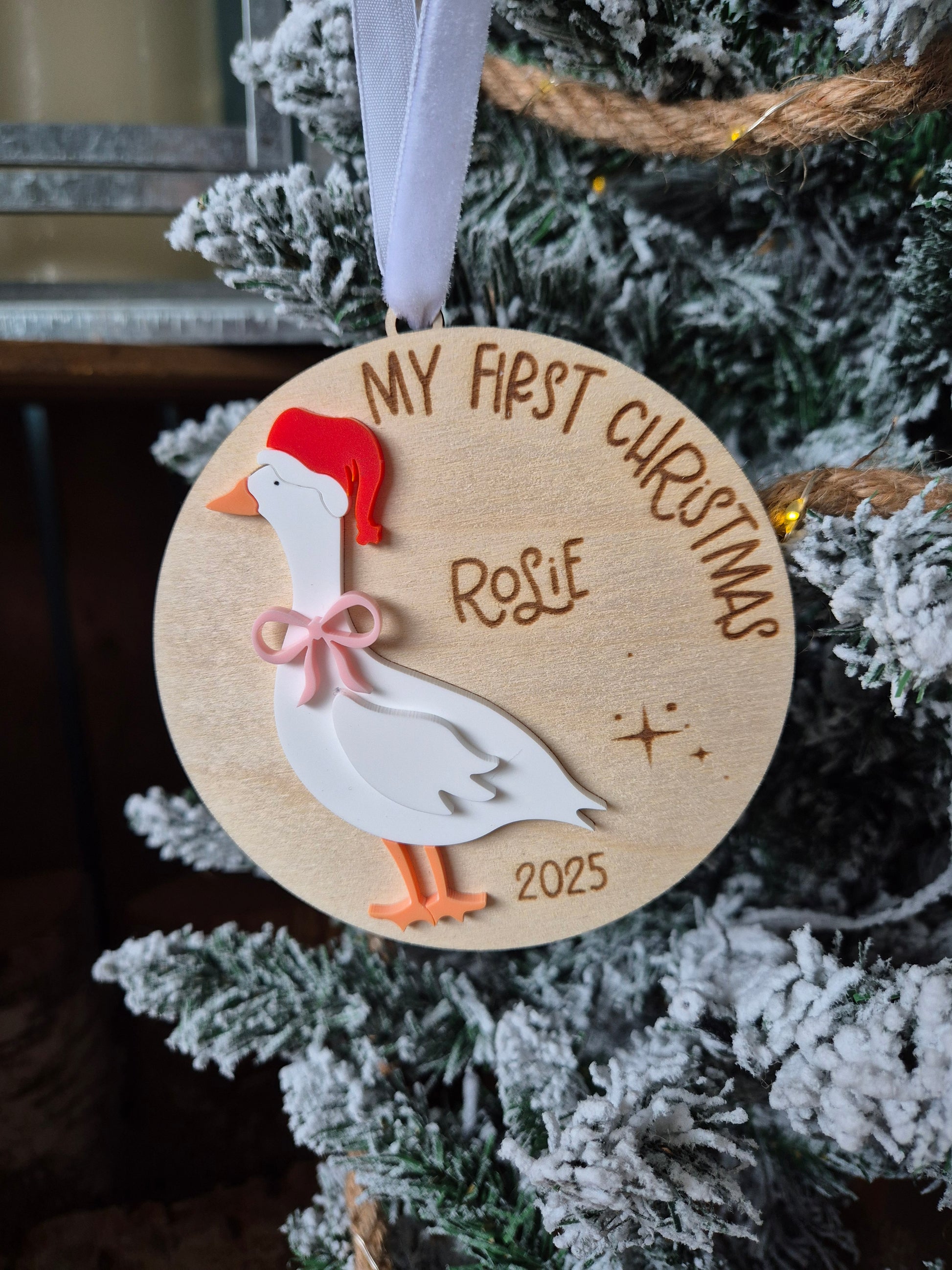 Baby's First Christmas Hanging Ornament - Personalised Santa Goose Tree Decoration