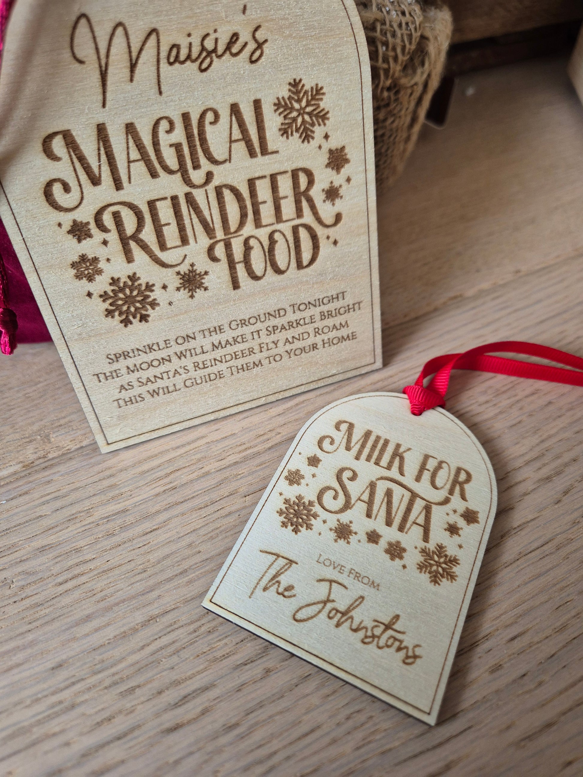 - Milk for Santa Tag — engraved wooden tag for your glass of milk to be placed on the Santa Treats board