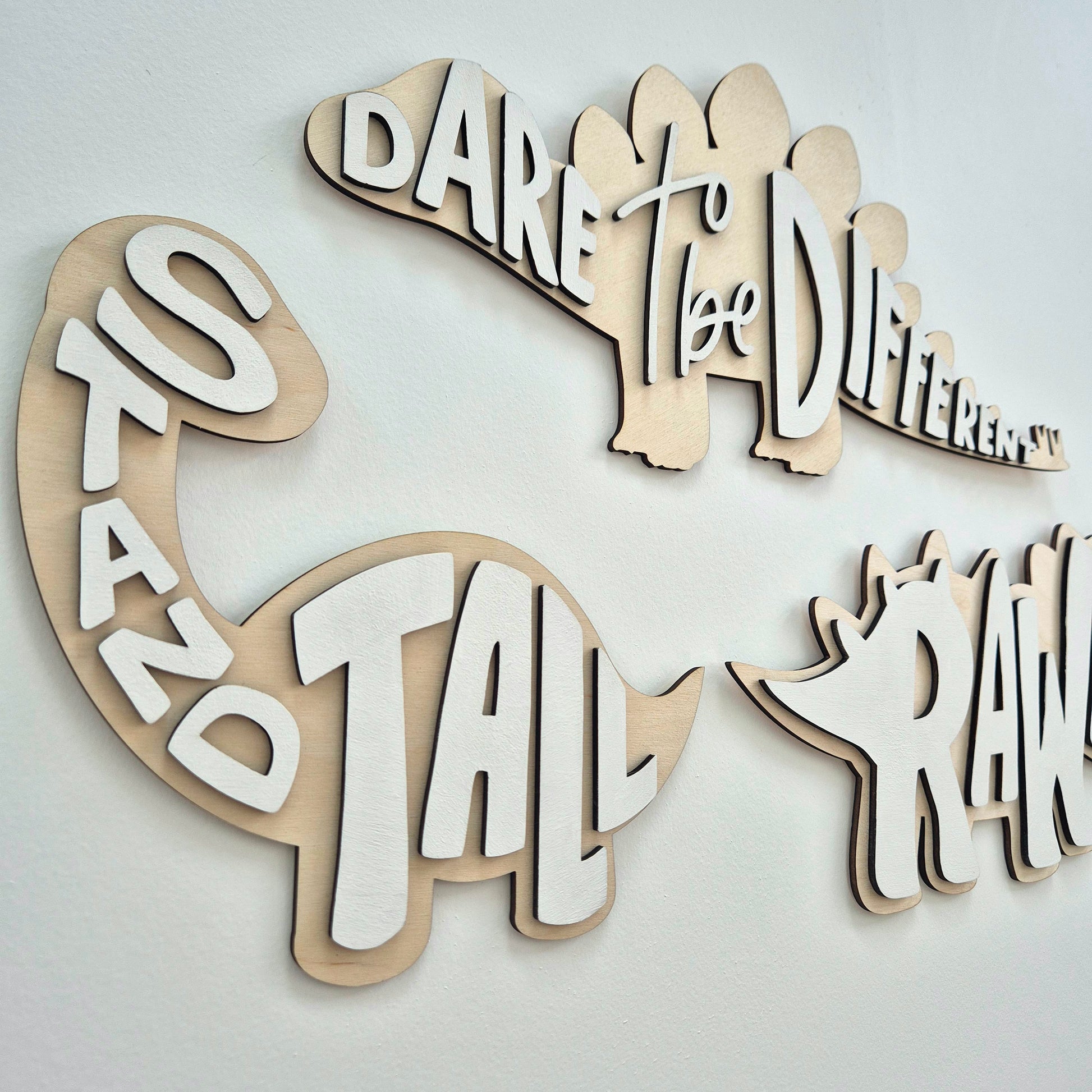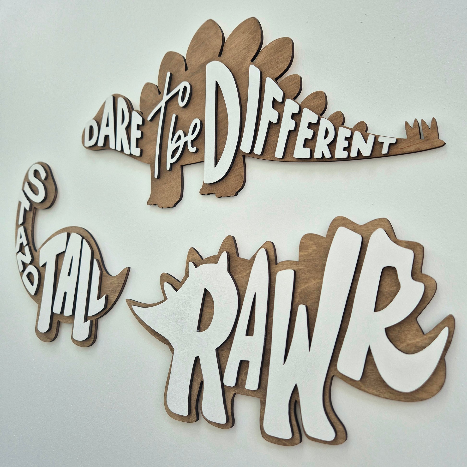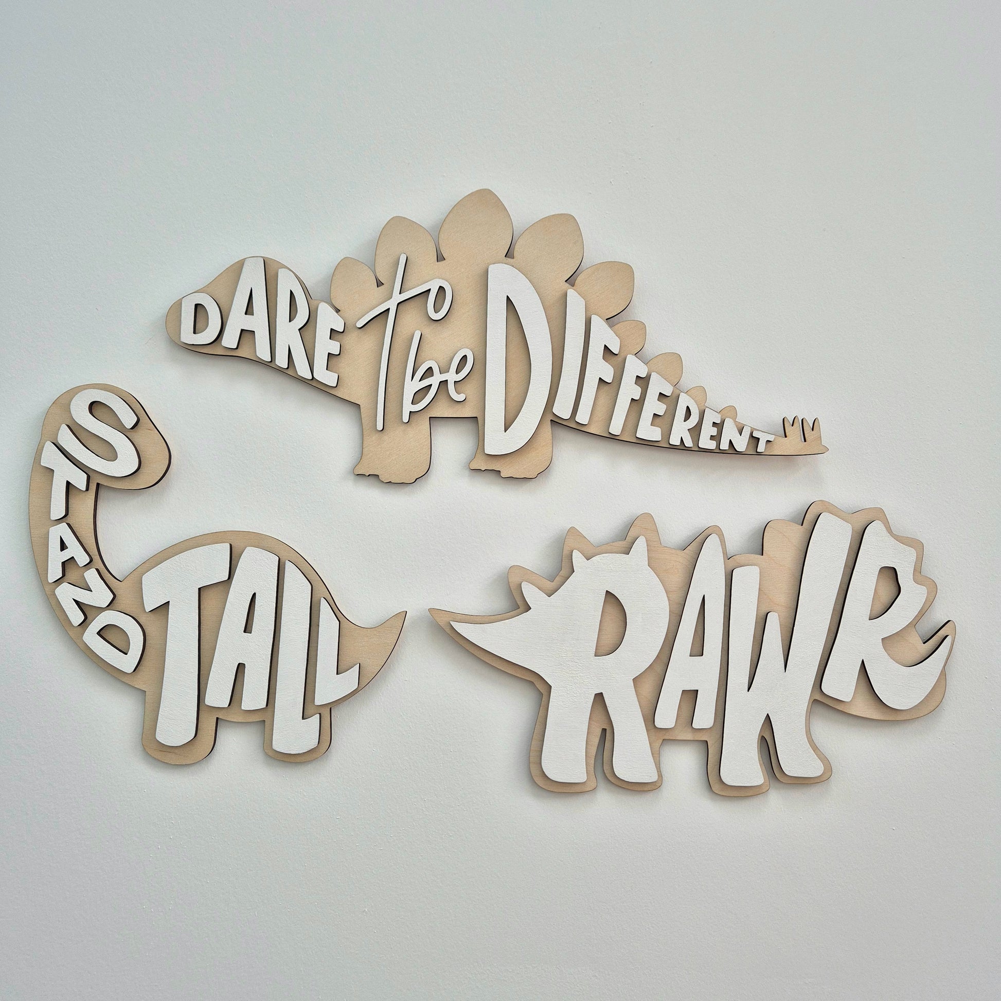 DinoRAWR Wall Signs – Set of 3, Inspirational Dinosaur Wooden Room Decor