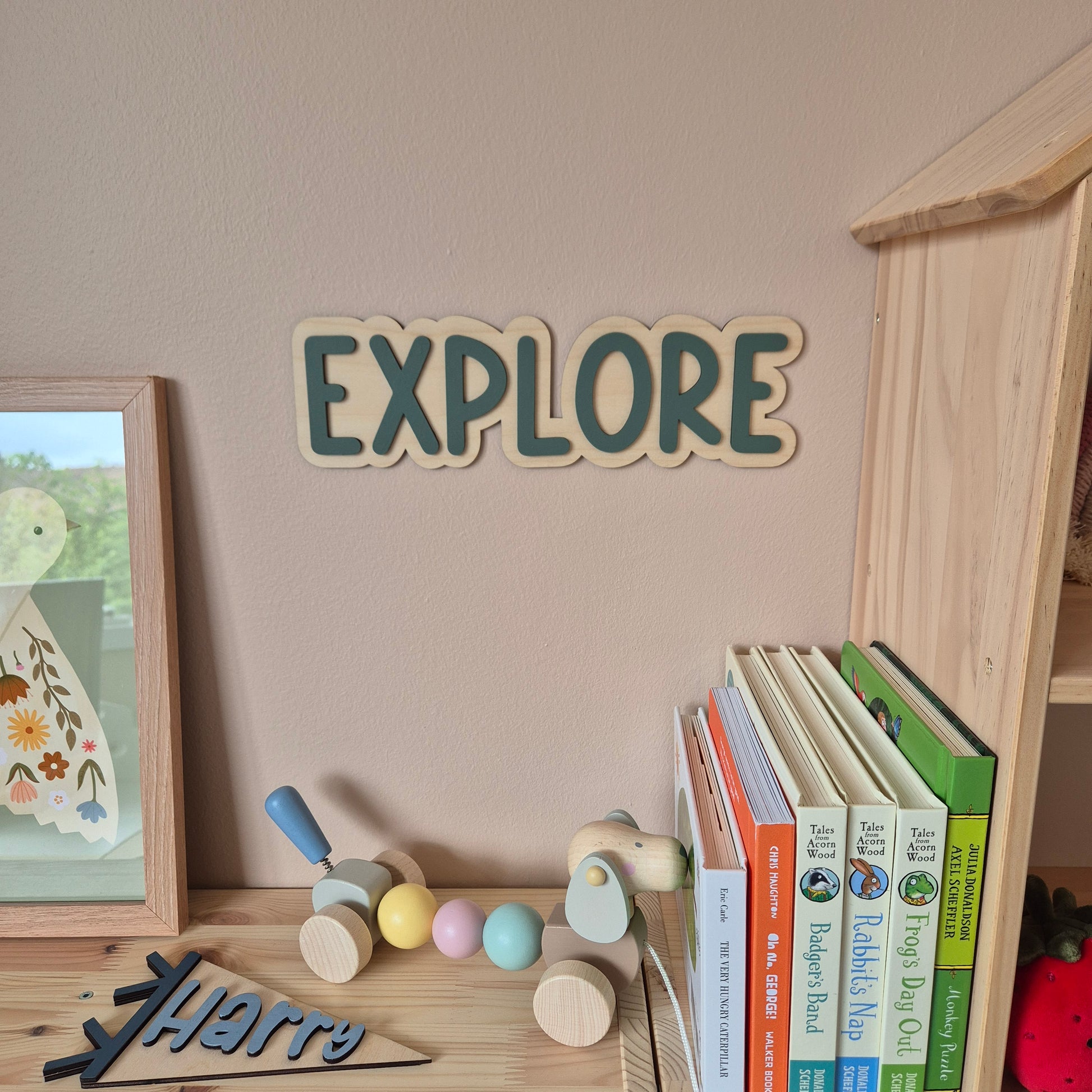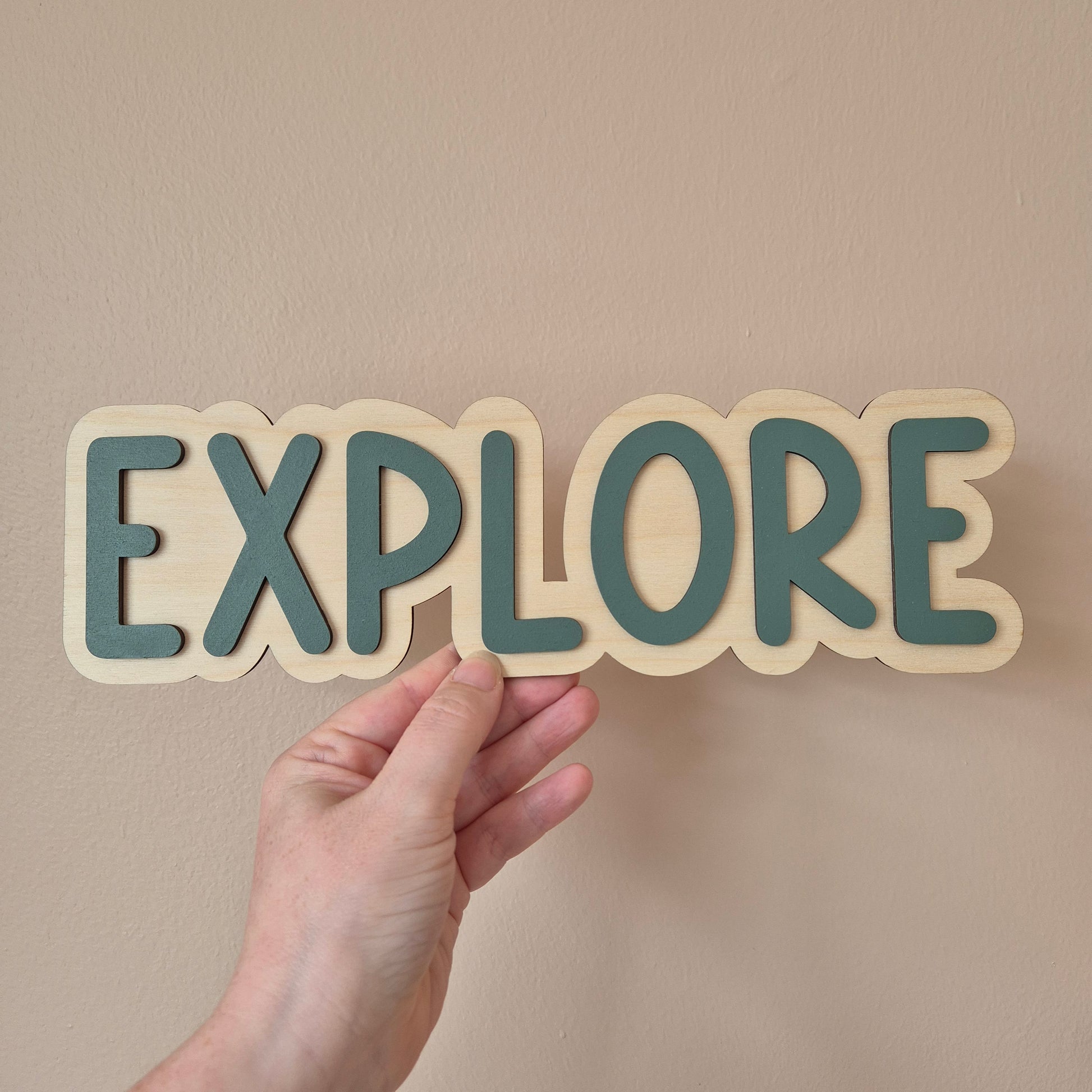 Double Layer 'Explore' Wall Sign - Hand-painted Wooden Phrase
