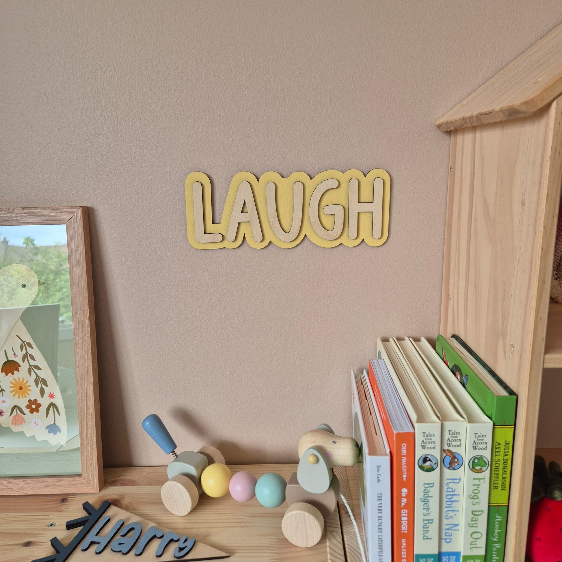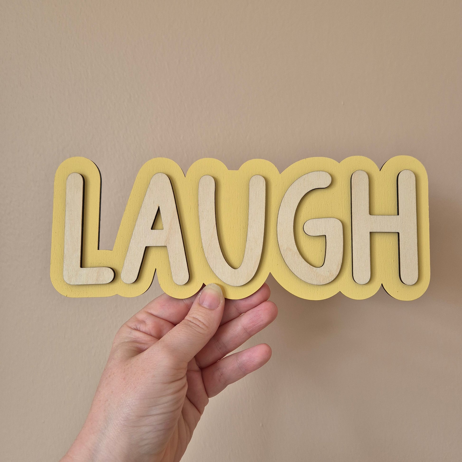 Double Layer 'Laugh' Wall Sign - Hand-painted Wooden Phrase