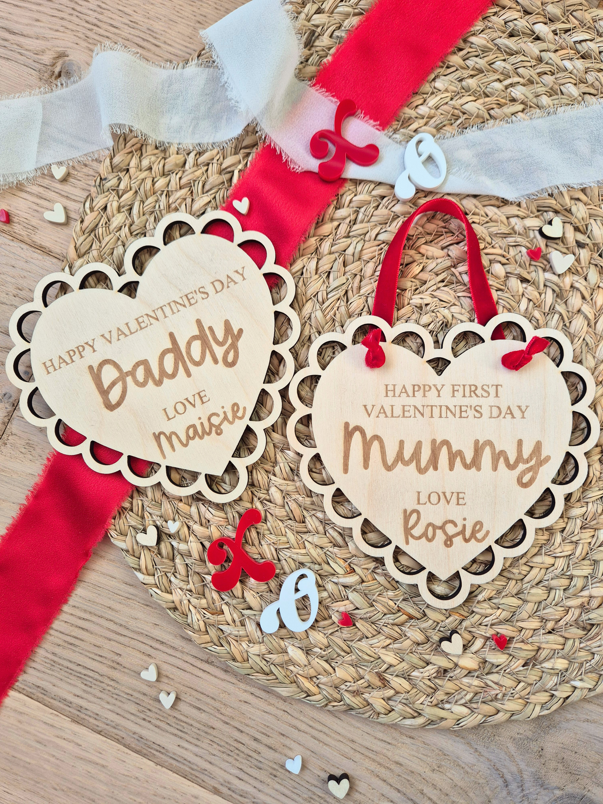 Create a heartfelt Valentine keepsake with our Lace Heart Happy Valentine's Day Keepsake, designed to celebrate little loves and the special people in their world. Each piece is engraved with your own custom message and the name of the person it’s gifted to, making it a truly meaningful Valentine treasure.