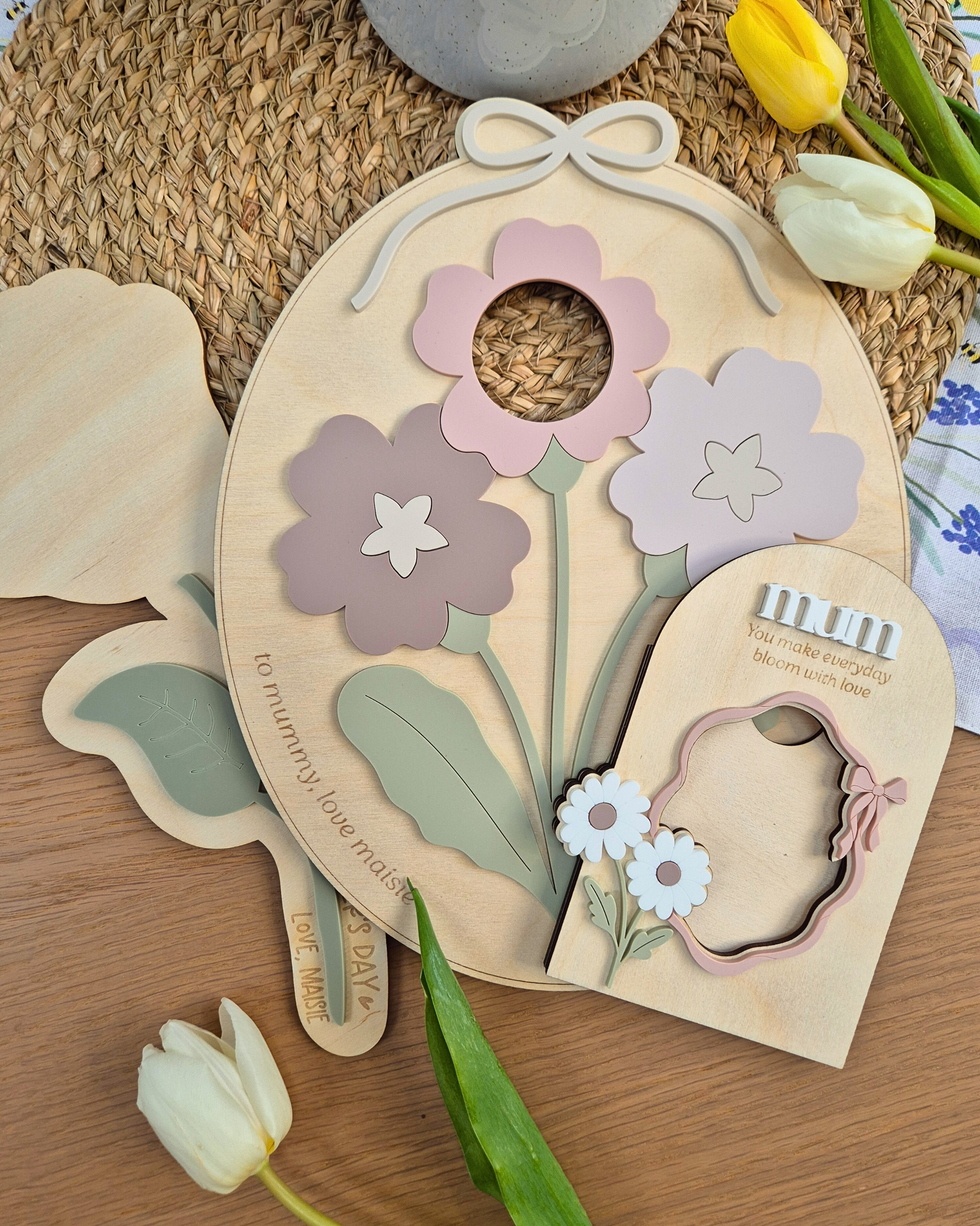 Mother's Day Photo Bouquet Plaque - Personalised Wooden and Acrylic Oval Floral Sign