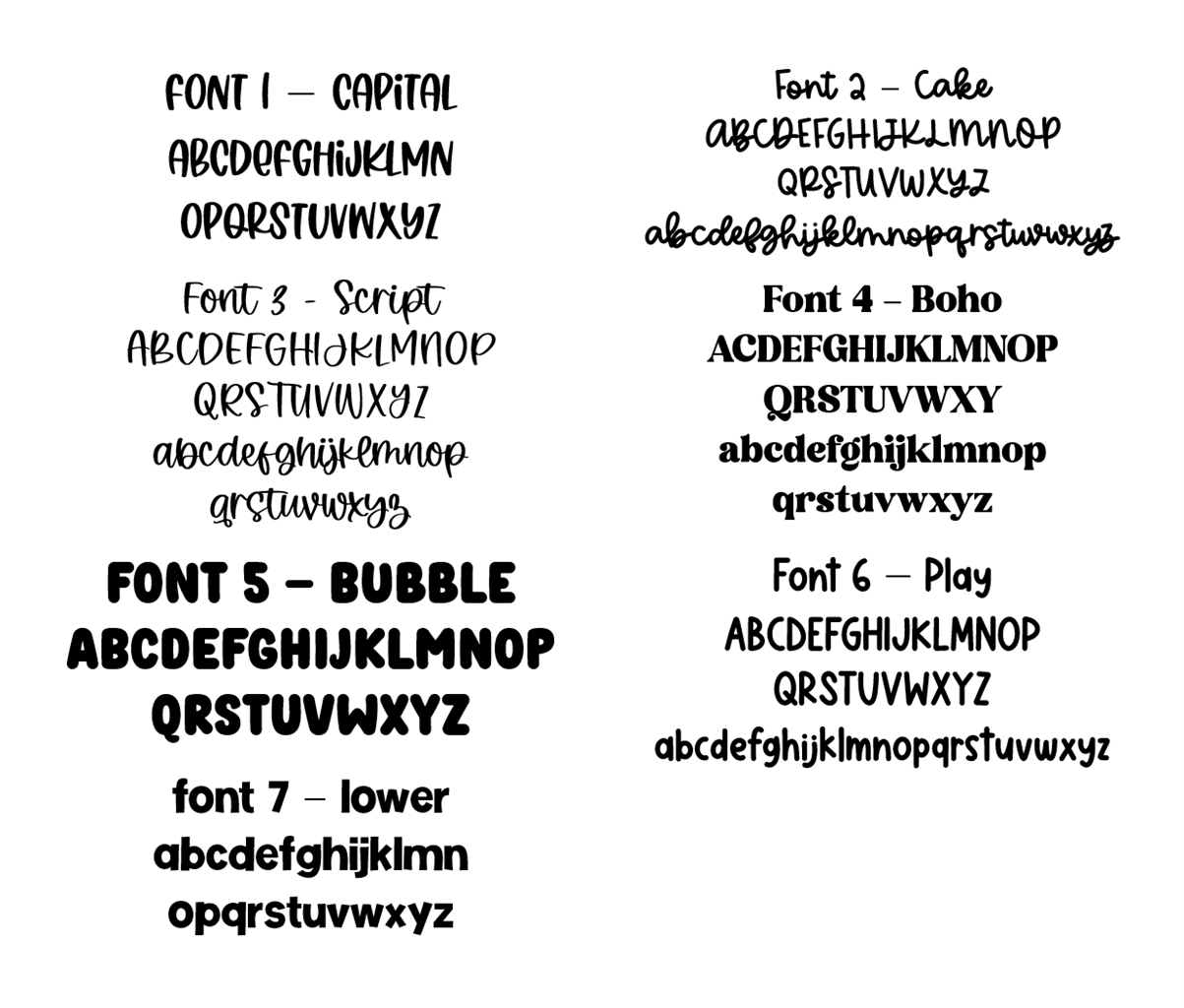 Don't forget to add your child's name, choose your font, and acrylic colour! Want to share your board between kids? No problem! You can purchase additional names here.