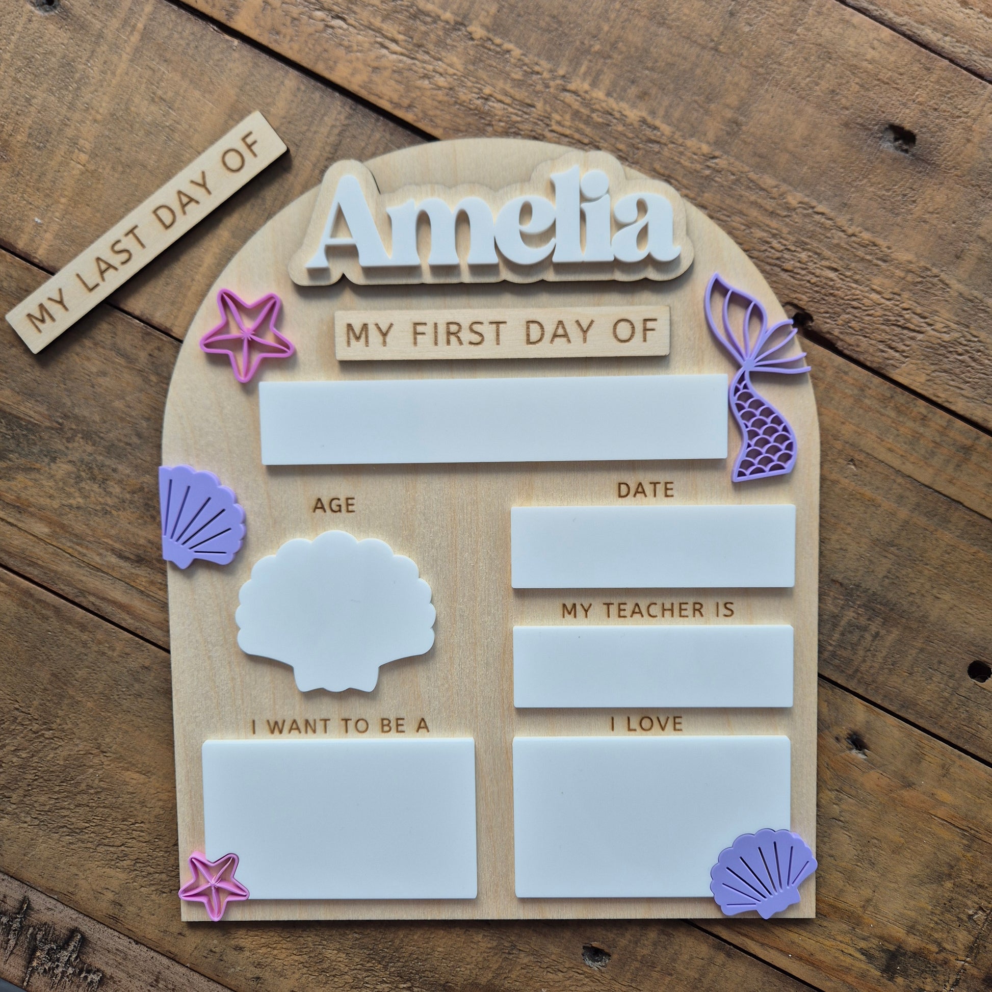 Personalised Mermaid Shells Back to School Board - Reusable Wooden and Acrylic Sign