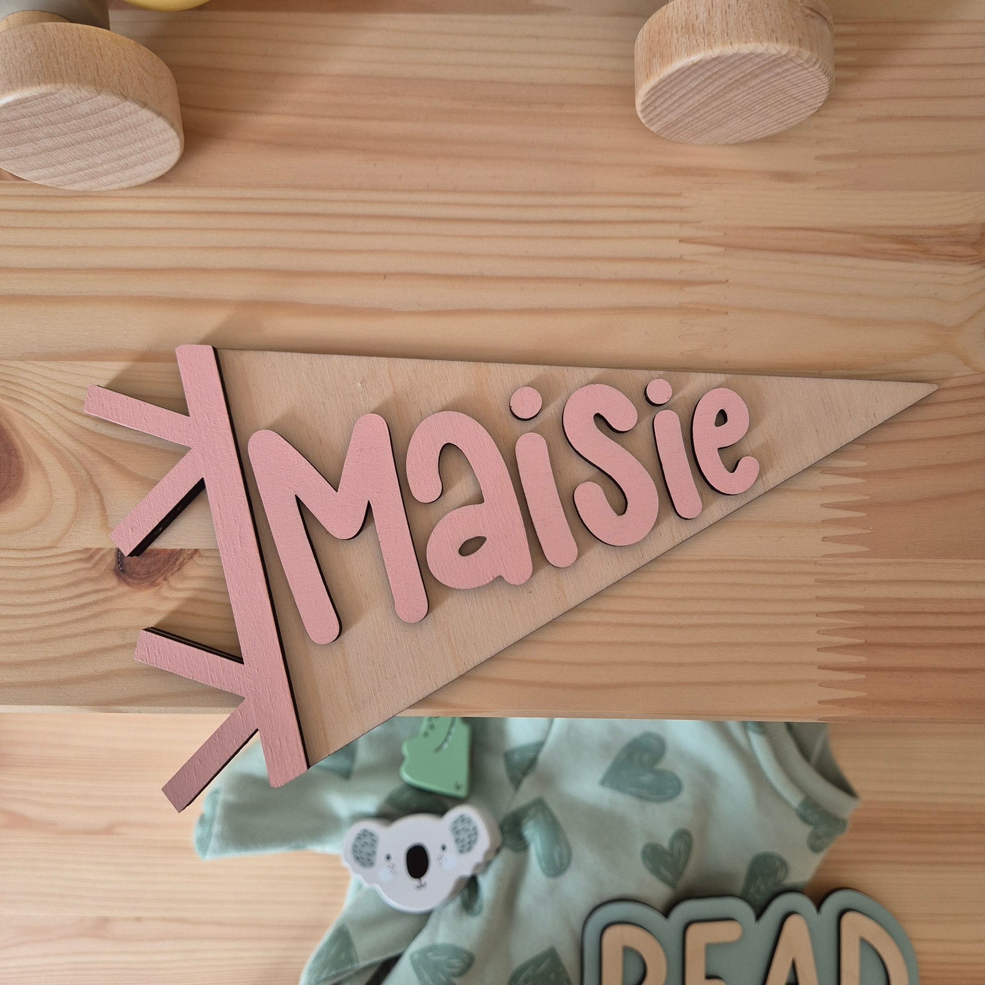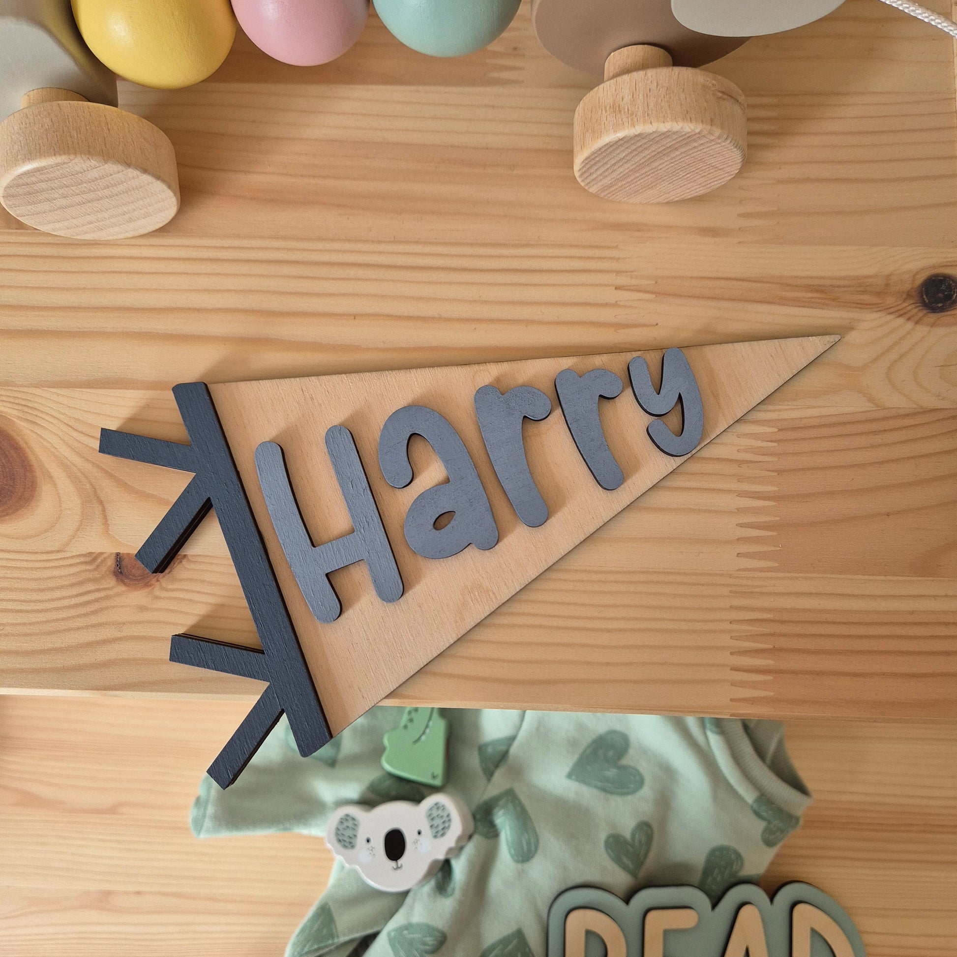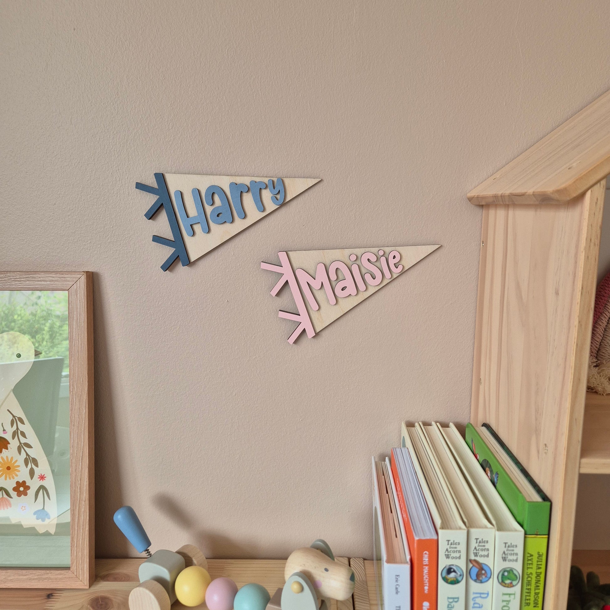 Personalised Wooden Pennant Flag - Custom Name Sign