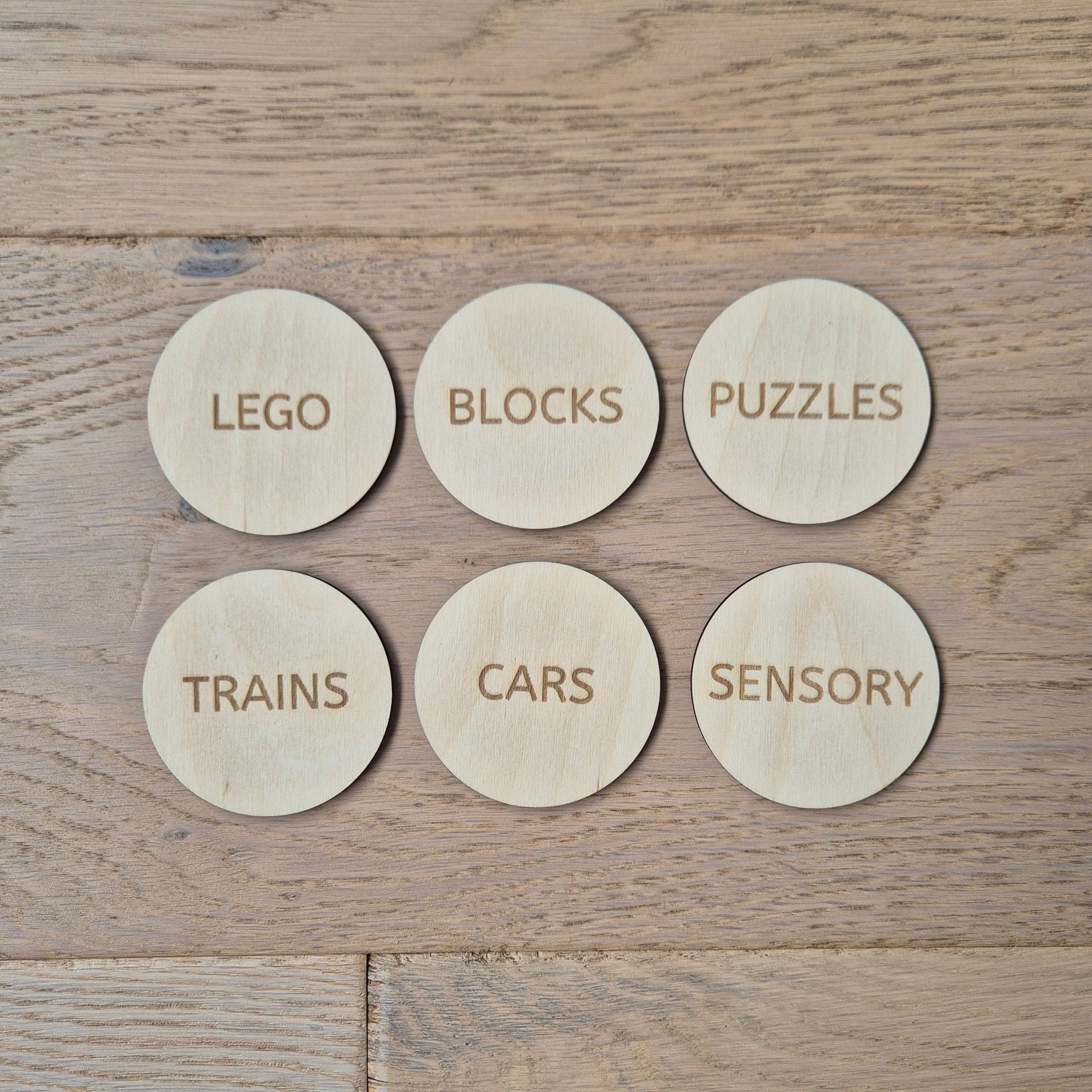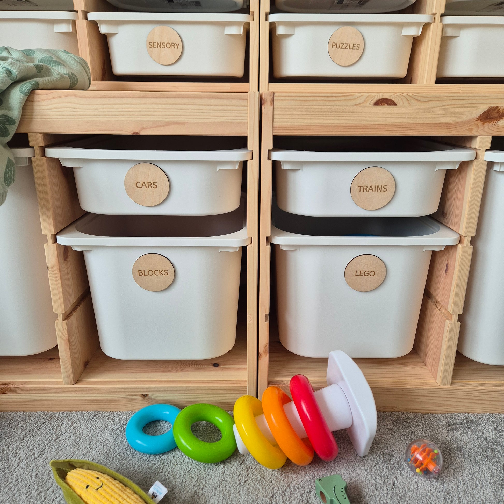 Tidy the playroom in style with our custom wooden labels designed to popular storage systems. This disc set features our bold block capital font style – clean, minimal, and easy to read for little ones.