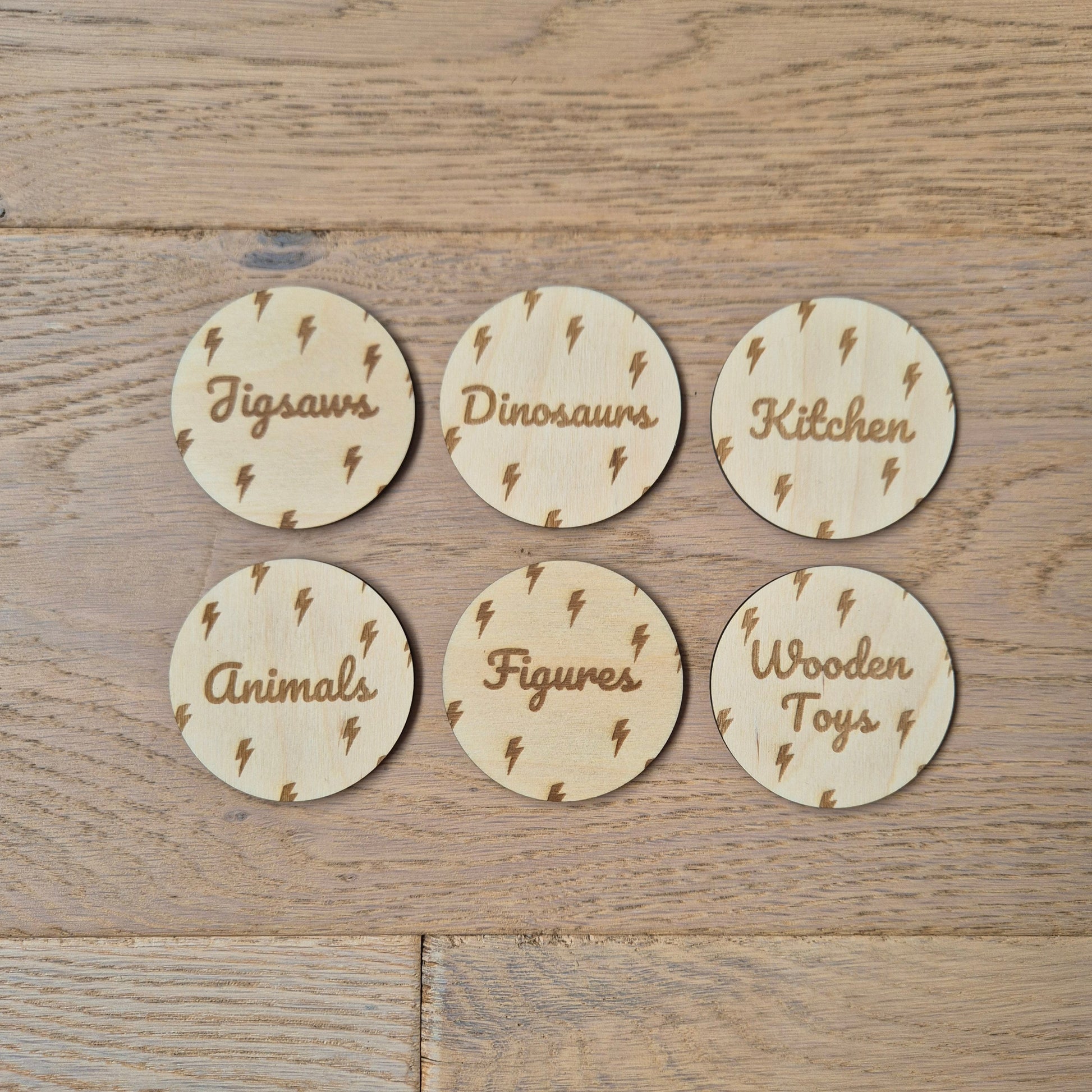 Precision engraved and made from sustainably sourced 3mm European birch plywood, these labels make toy tidying simple, stylish, and child-friendly. Simply enter your custom label titles (one word or short phrase per label) and we’ll create your perfect and practical set!