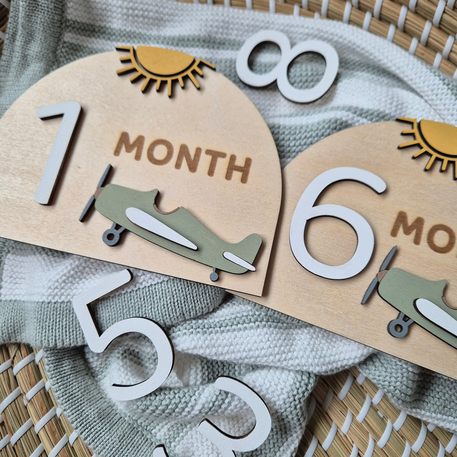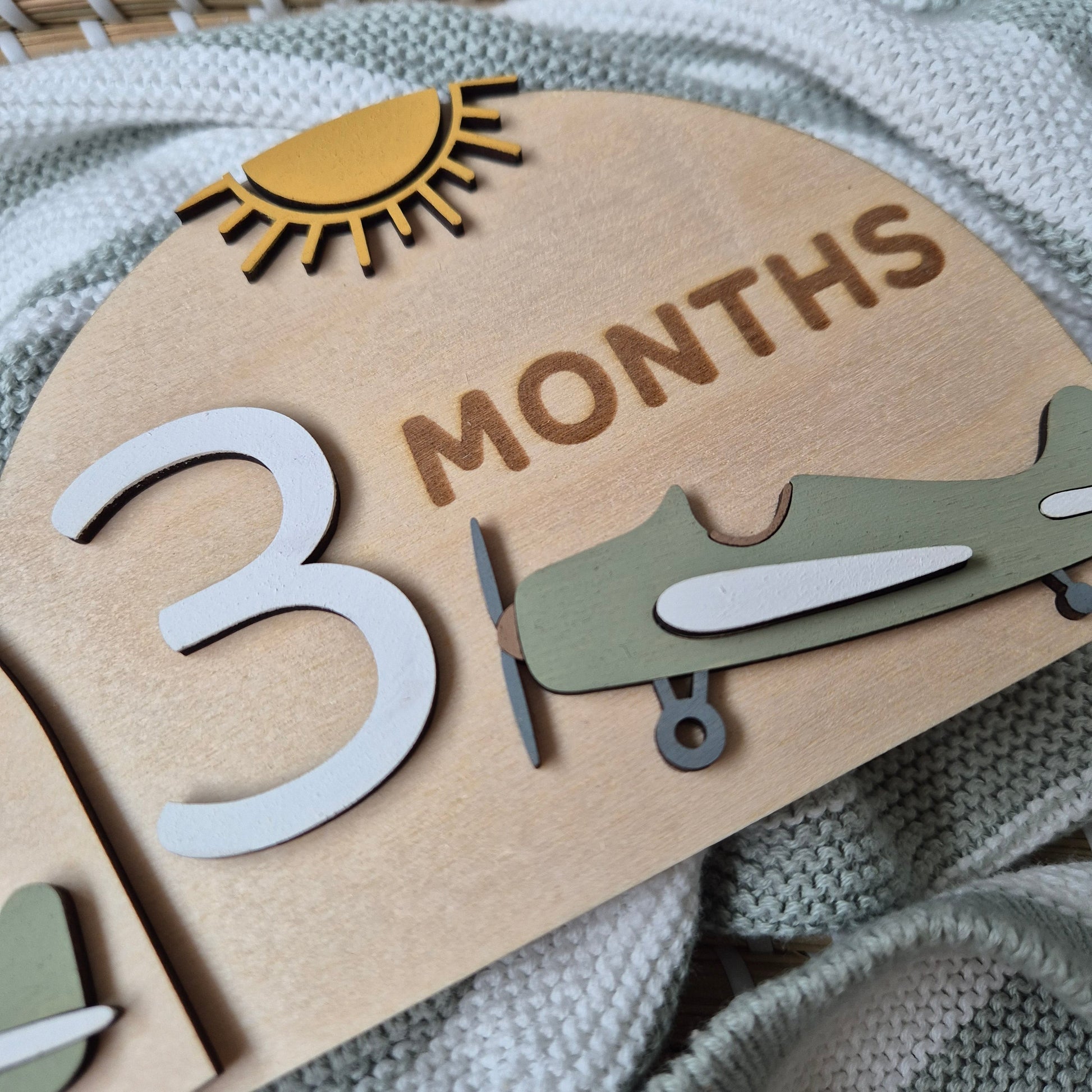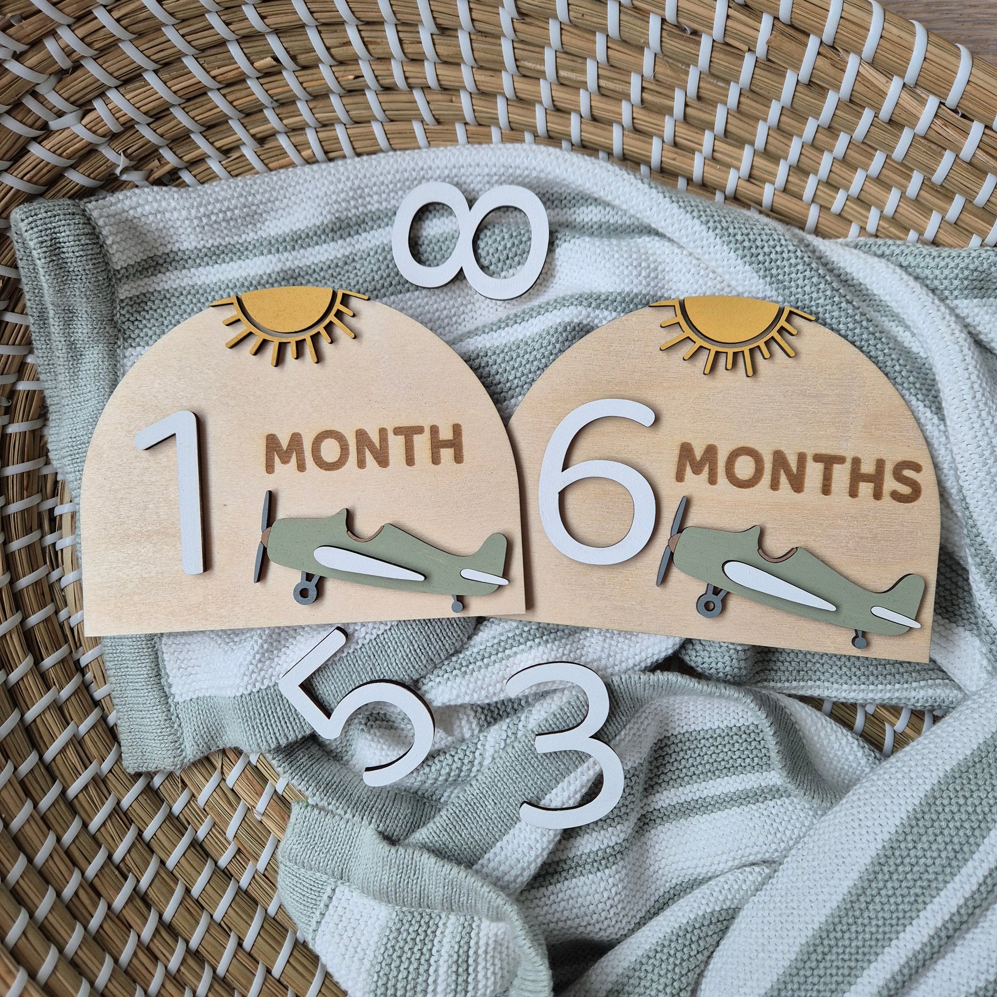 Vintage Plane Interchangeable Milestones Arch Plaques - Wooden Photo Props