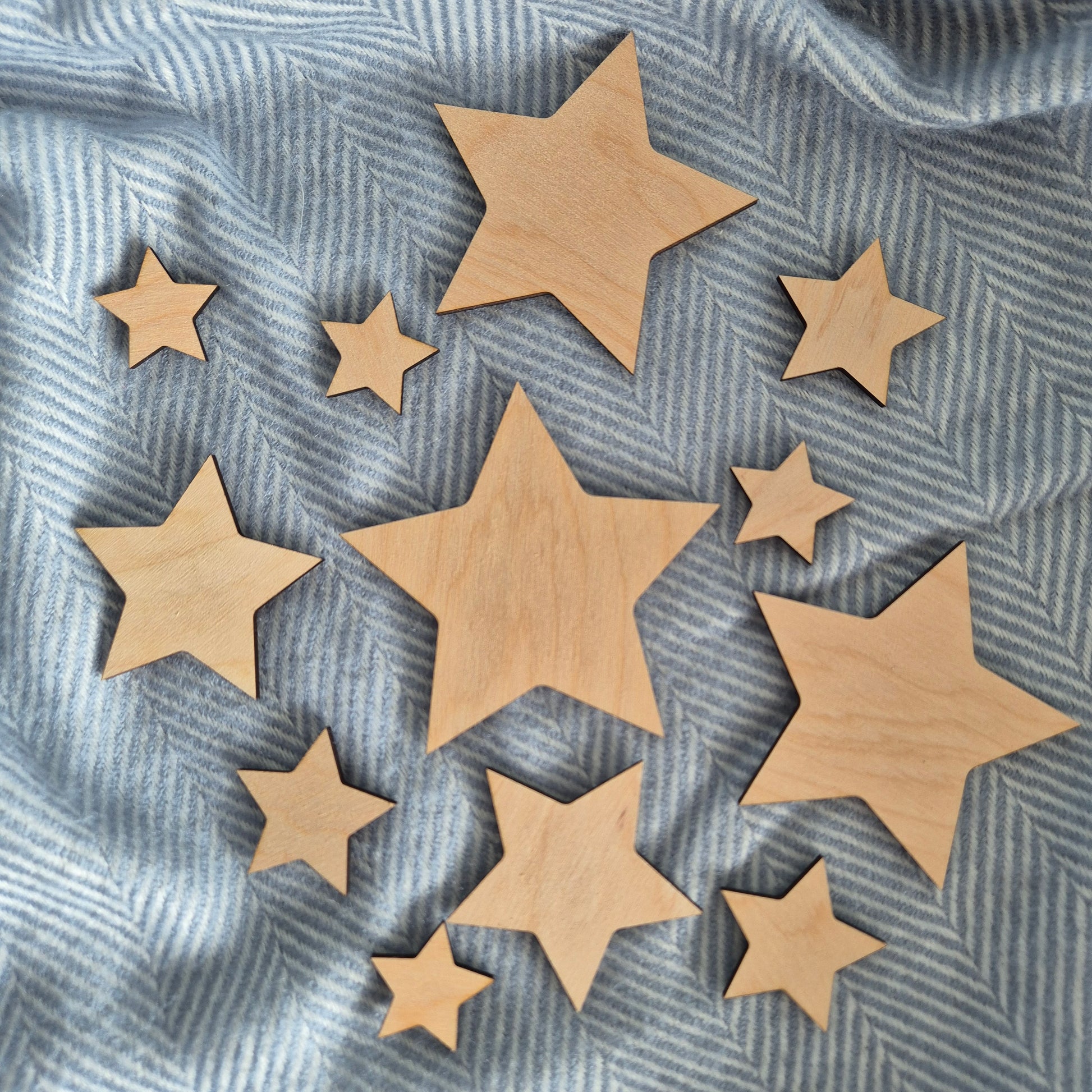 Bring a sprinkle of magic to your little one’s room with our Wooden Stars – a perfect complement to our Up, Up and Away collection. Each set includes 12 wooden stars in a mix of sizes, ready to create a starry sky around your height chart, name sign, or anywhere in the nursery. These stars have a natural birch finish, however feel free to paint at home with a colour of your choosing.