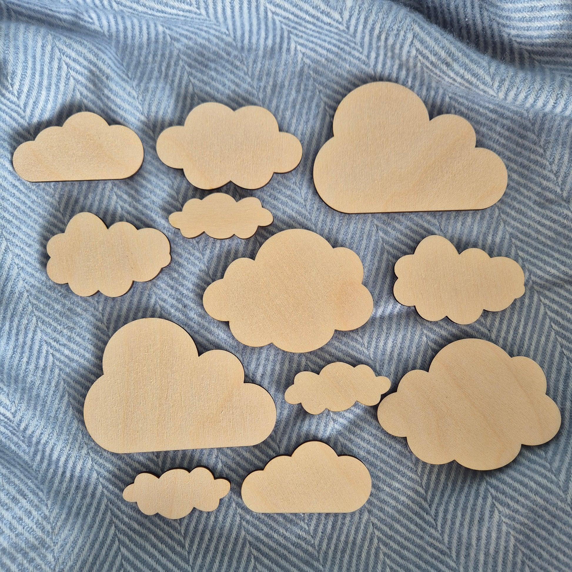 Float above the clouds with our whimsical Wooden Cloud Wall Shapes, perfect for softening nursery walls and designed to pair with our Up, Up and Away vintage planes and stars. Each set includes 12 wooden clouds in a mix of sizes, ready to create a fluffy sky around your height chart, name sign, or anywhere in the nursery. These stars have a natural birch finish, however feel free to paint at home with a colour of your choosing.
